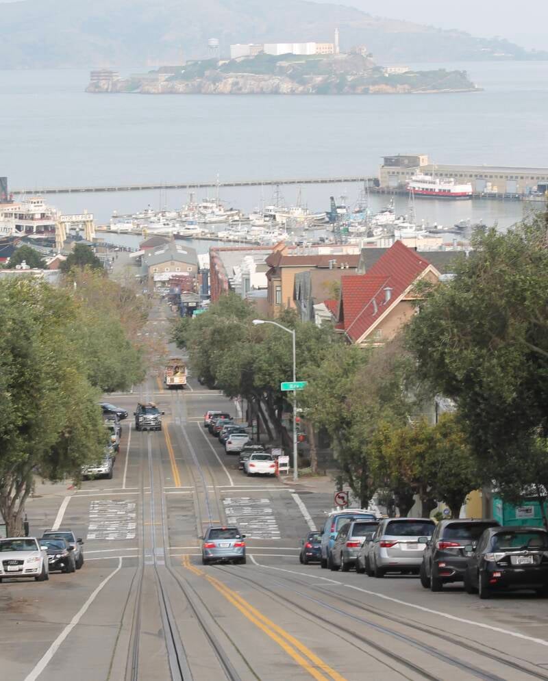 Eine der bekanntesten Straßen, auch wenn hier keine Cable Car entlang fährt, ist die Lombard Street. Die Straße, welche die kurvenreichste der Welt ist, ist schon ein toller Anblick. Hier schieben sich Autos in den engen Kurven zwischen bunten Blumenbeeten die Straße hinab.