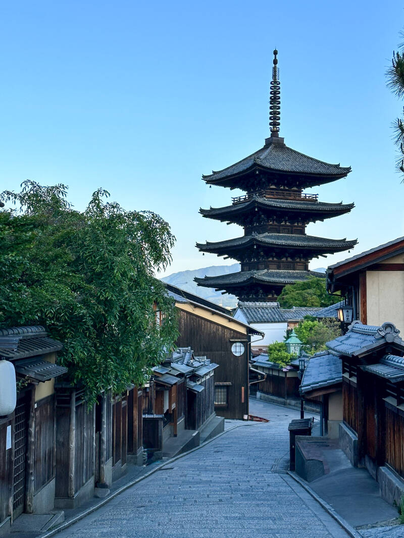 Wir sind tatsächlich zwischen 5 und 6 Uhr morgens, kurz vor Sonnenaufgang, aufgestanden und hoch zum Higashiyama-Viertel und zur Yasaka-dori Straße spaziert.